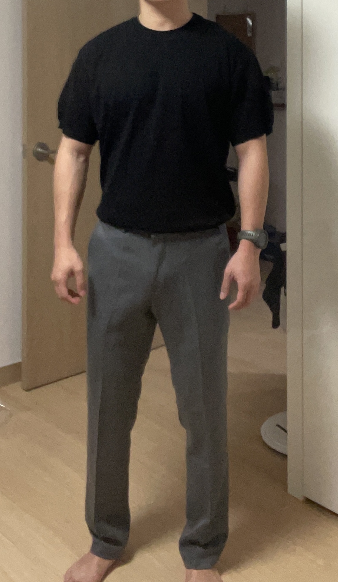 우선 티는 조금 끼는편입니다. 바지는 살짝 기장이 긴편입니다. 전반적으로 1센치쯤 부족한 느낌이었습니다. 그래도 나름 스타일은 마음에 들었습니다.