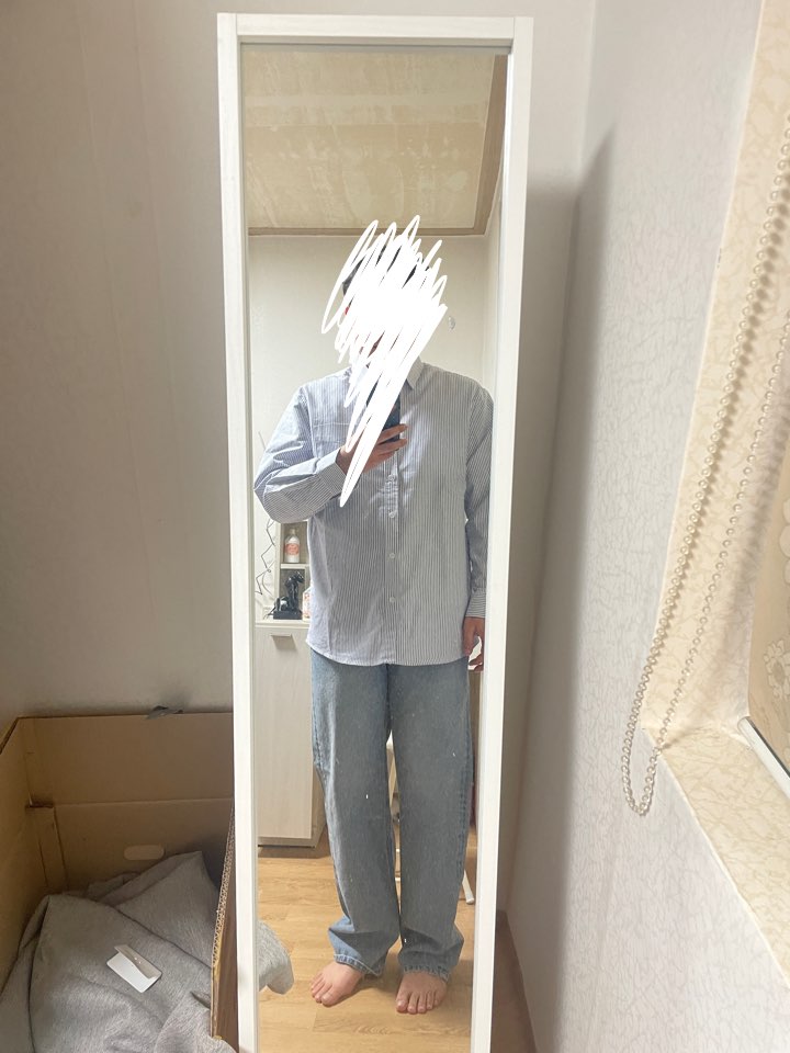 사이즈 미스를 떠나서 보통 이렇게 입나요? 정사이즈의 스트라이프셔츠에 와이드한 연청이라니.. 옷 자체는 나쁘지않은데 99,000원이라고 생각하고 보면 코디에 조금 더 신경을 써주셨으면 좋겠어요 남은 옷 받은 느낌이에요