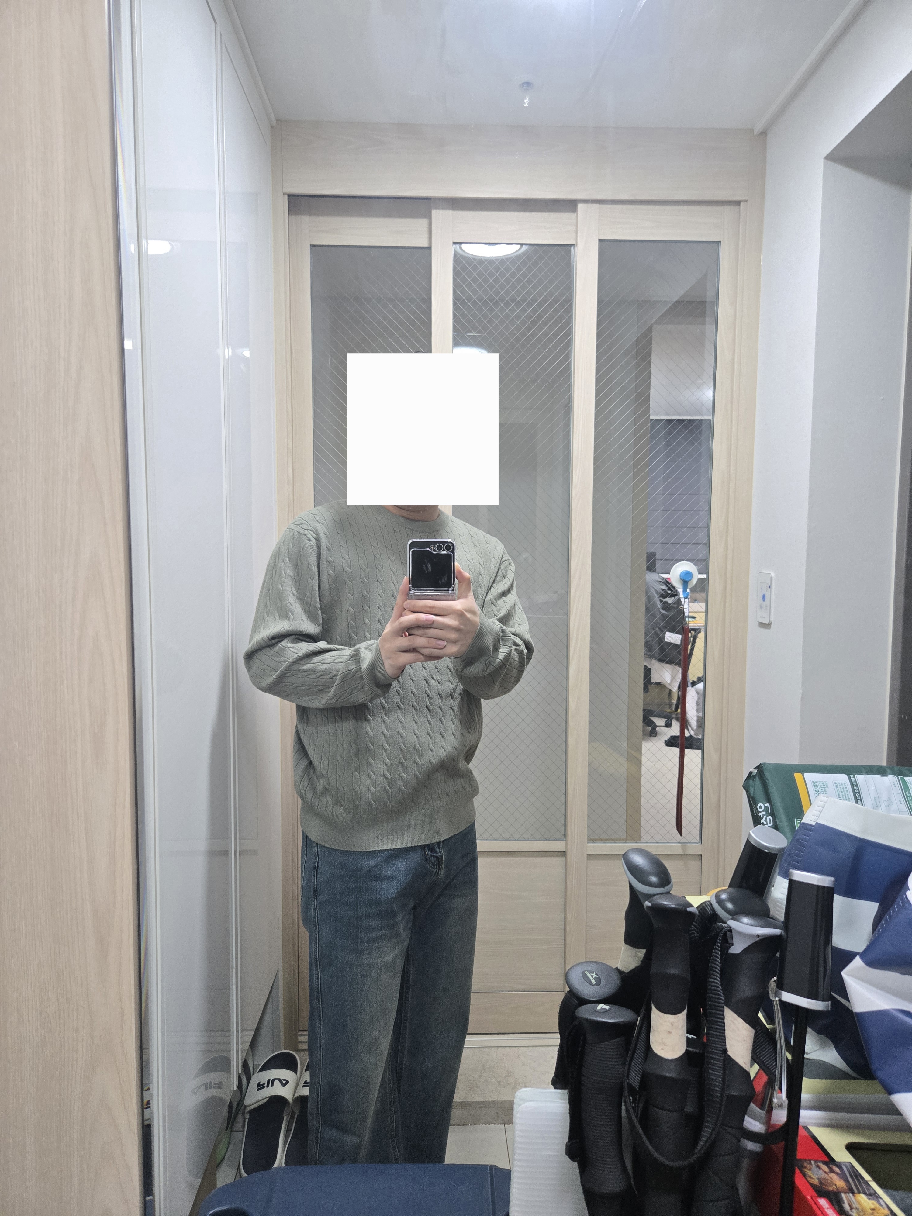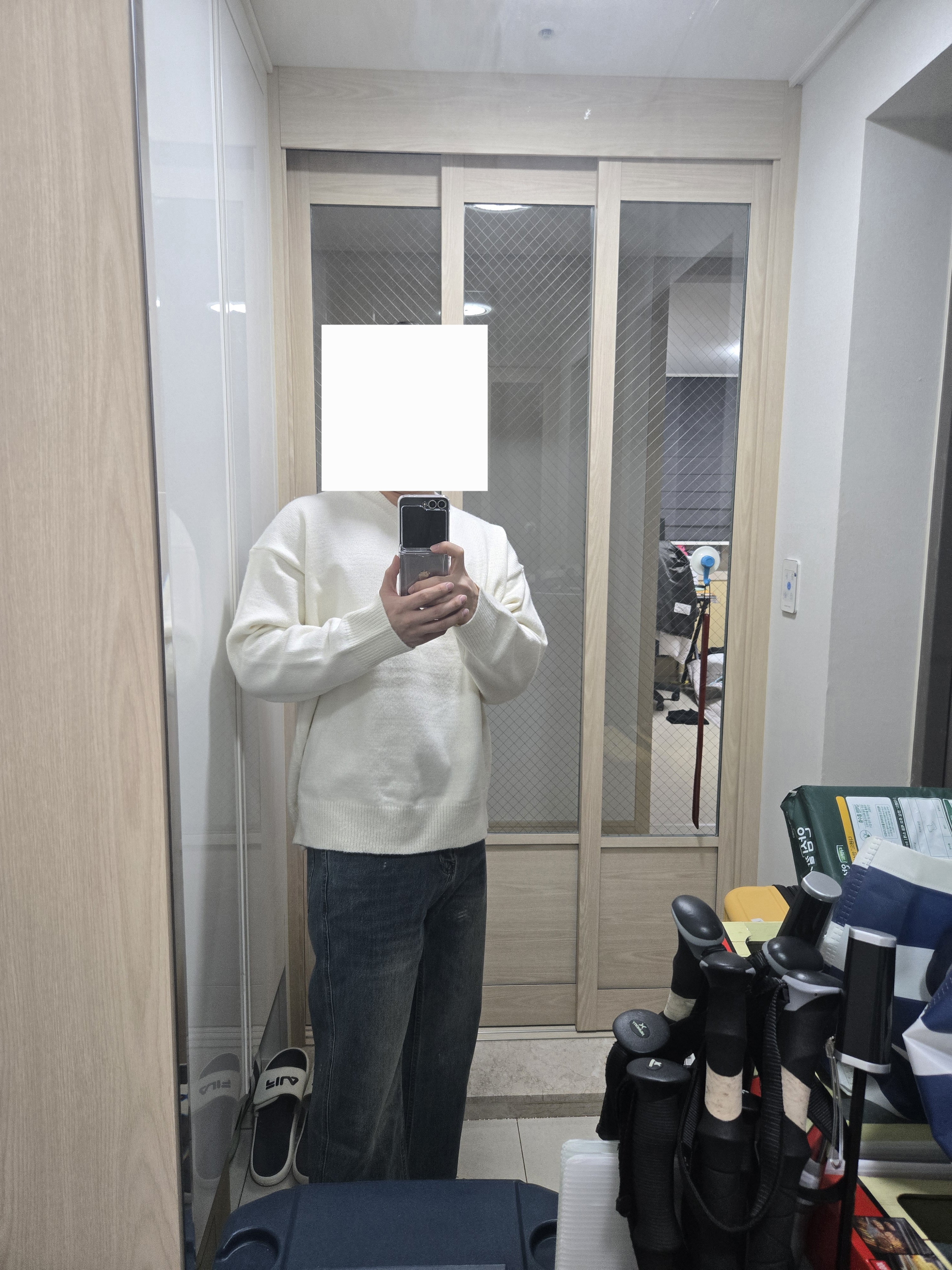 바지가 일단 너무 마음에 들어요. 사이즈도 괜찮고 기장감도 딱 좋네욯ㅎㅎ 상의도 너무 어둡지않아서 위에 아우터없이 입어도 이쁜거 같아요. 후회없는 구매였습니다.