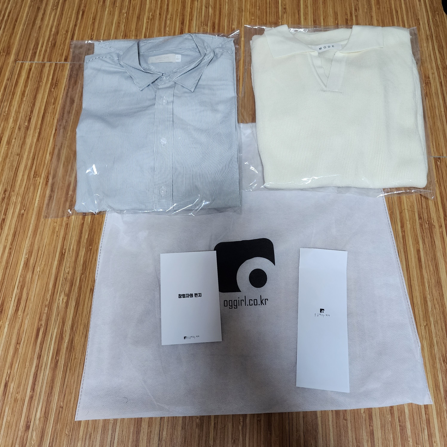우선 요거 두개 왔는데 여기에 뭘 매칭해서 입어야할지 감이 안오기두 하구.. 흰색면티도 보통 왔었던거 같은데 이번엔 요거 두개만 왔네용 ㅠㅠ