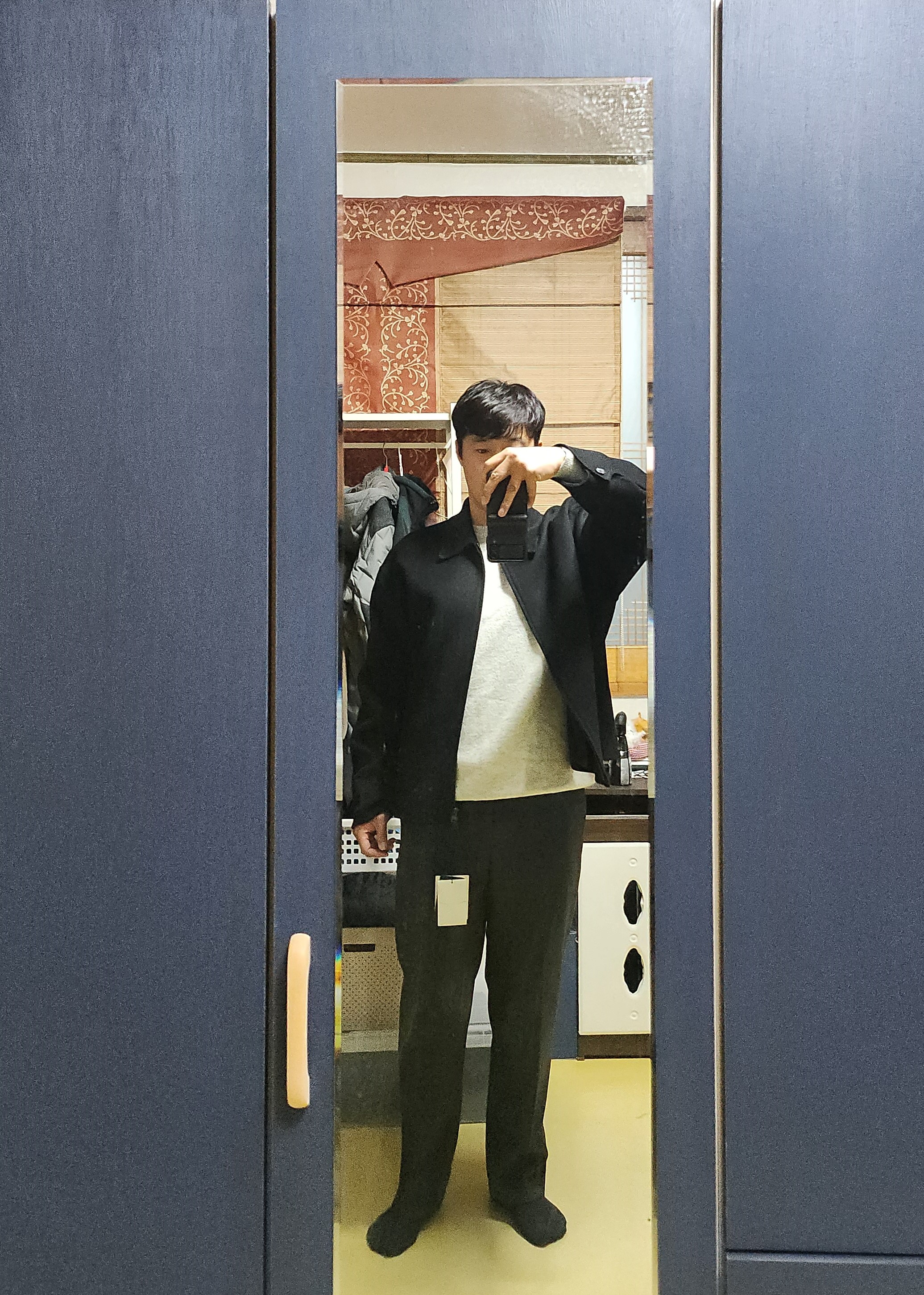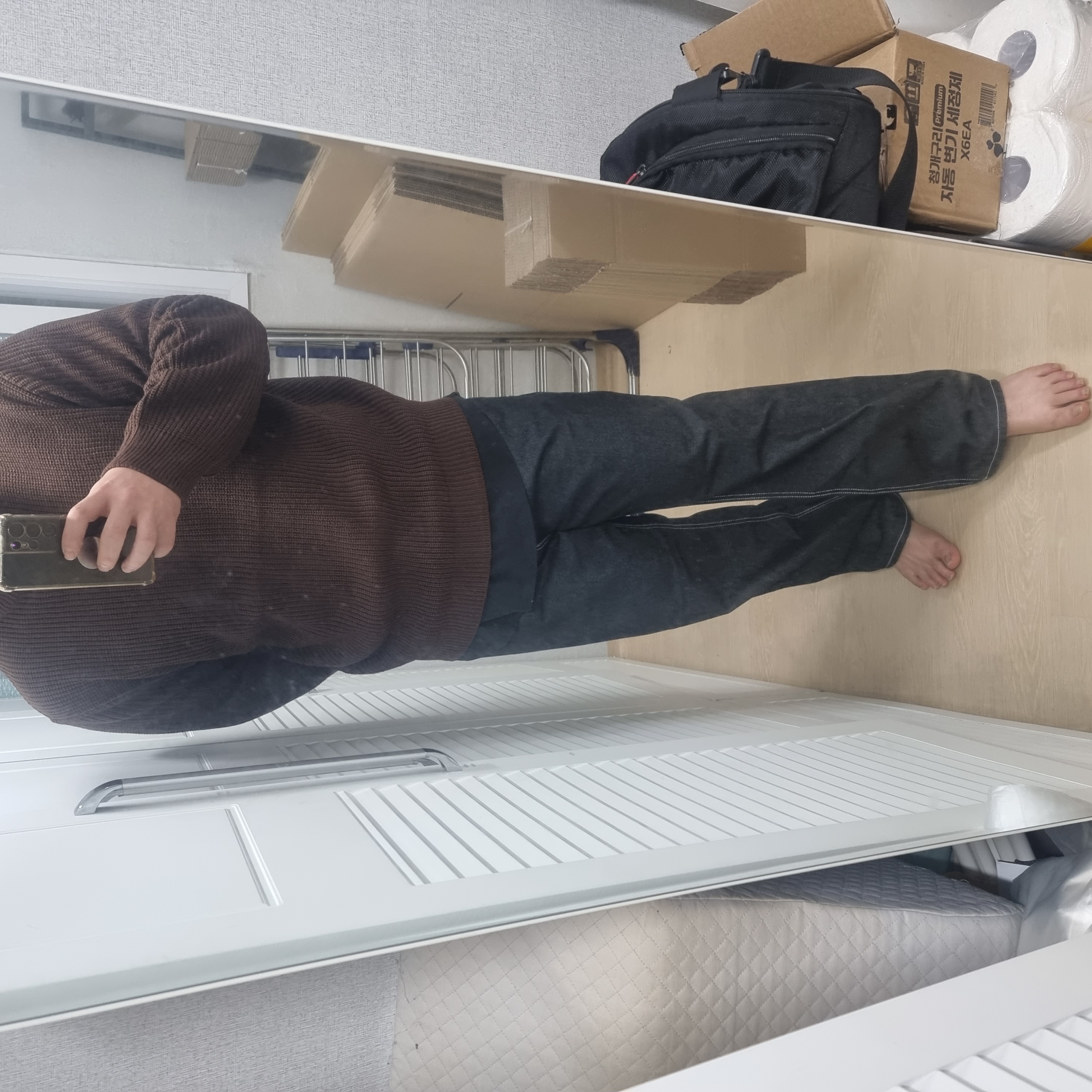 오자마자 바로 입고 사진찍었어요 저진짜 옷도 못입고 못고르고, 흥미도 못느껴서 이게 너무 편한거같아요 제가 또 허리가 긴편인데 바지 스타일도 그에 맞게 사는게 힘들었는데 좋고 어떻게 입는지도 잘모르는데 니트를 청바지안에 넣어서 입어라 같은 가이드있어서 좋네요 다리는 길이는 종아리가 짧은 특성상 수선해야할듯합니다. 주변에서 옷예쁘다고 잘골랐다고 하네요 감사합니다^^