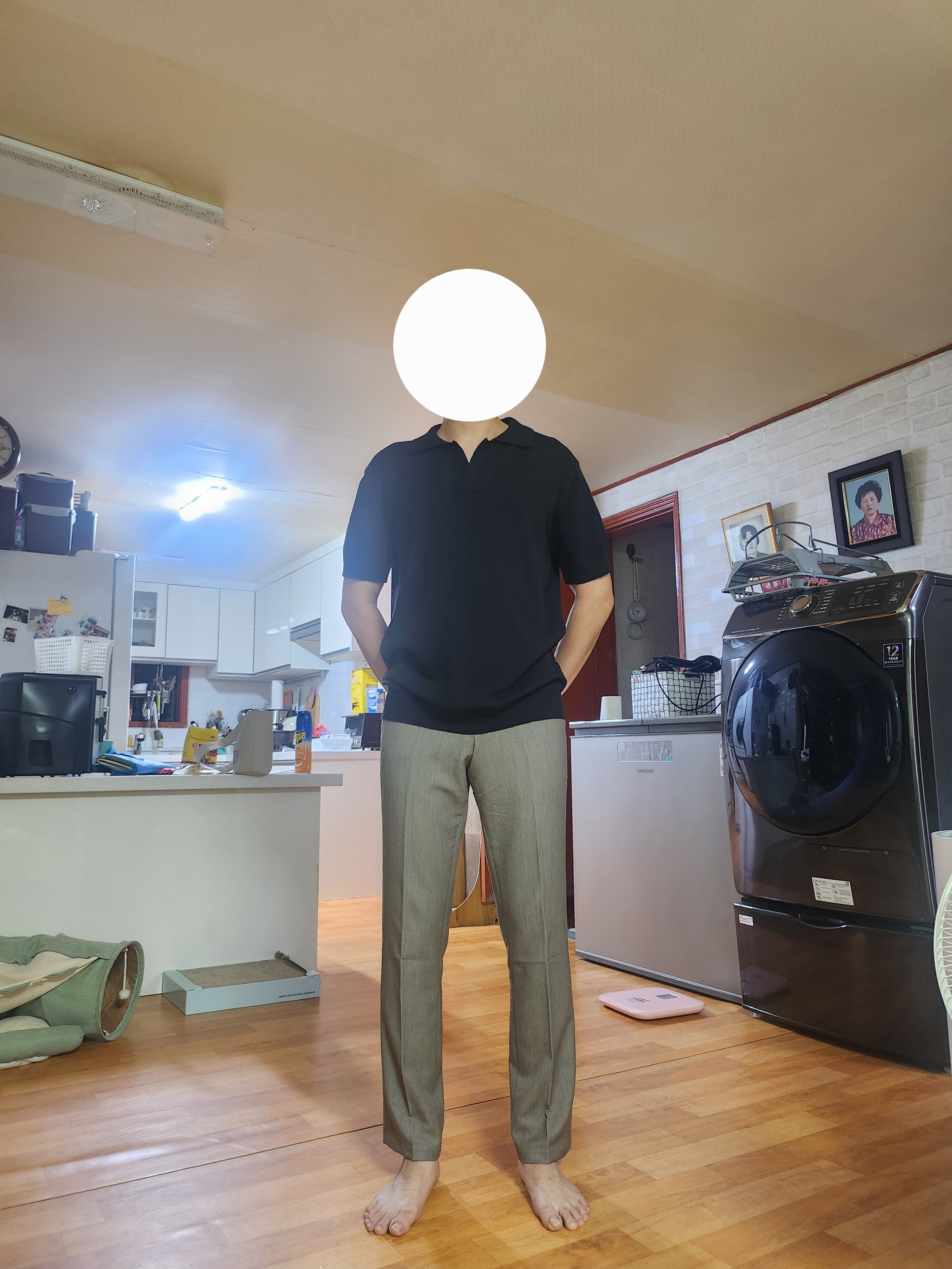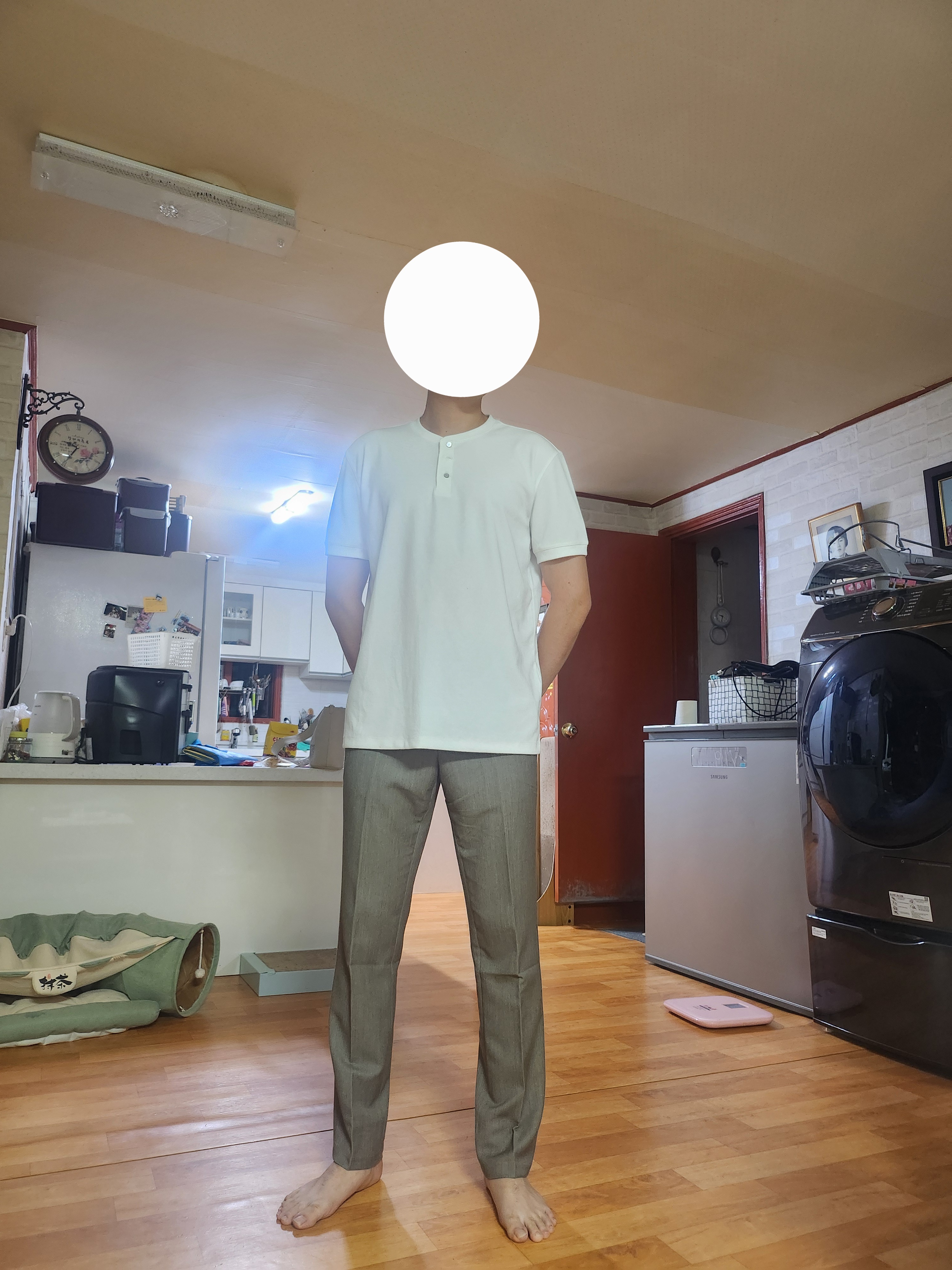 처음 구매를 했습니다 깔끔하고 주변에서 좋아해서 좋았지만 브이넥 옷이 있고 바지 길이가 조금 더 길으면 좋을 것 같습니다 그래서 5점 만점에 4.5점을 주고 싶지만 4.5점은 없네요 ㅎㅎ 그래도 후회 없고 만족합니다!!
