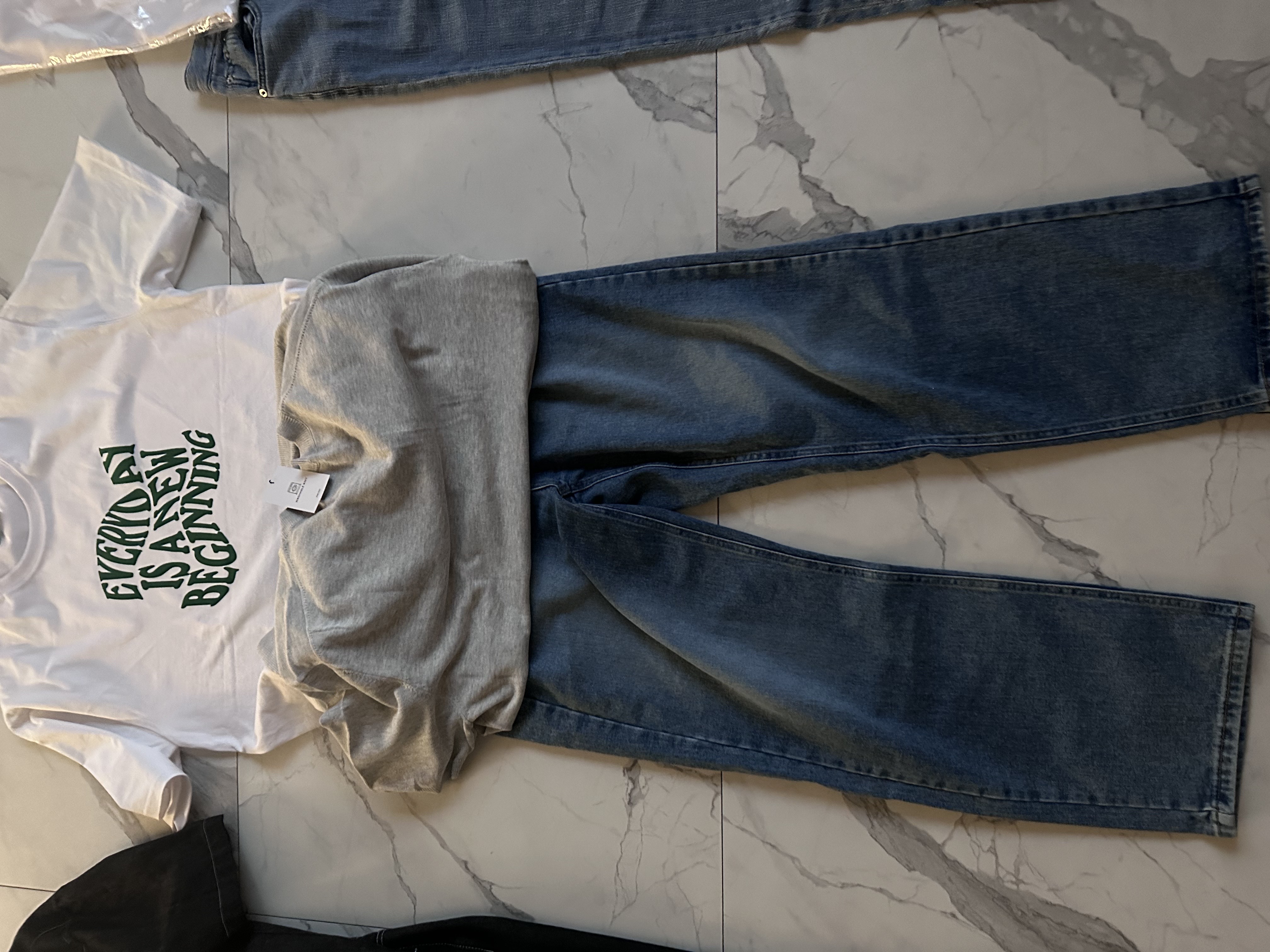 흰색 검정 스프라이트 반팔니트랑 면바지랑 같이 입었는데 주변에서 옷이 이쁘대요 저 말고 ;; ㅋㅋ. 잘입고 있습니다