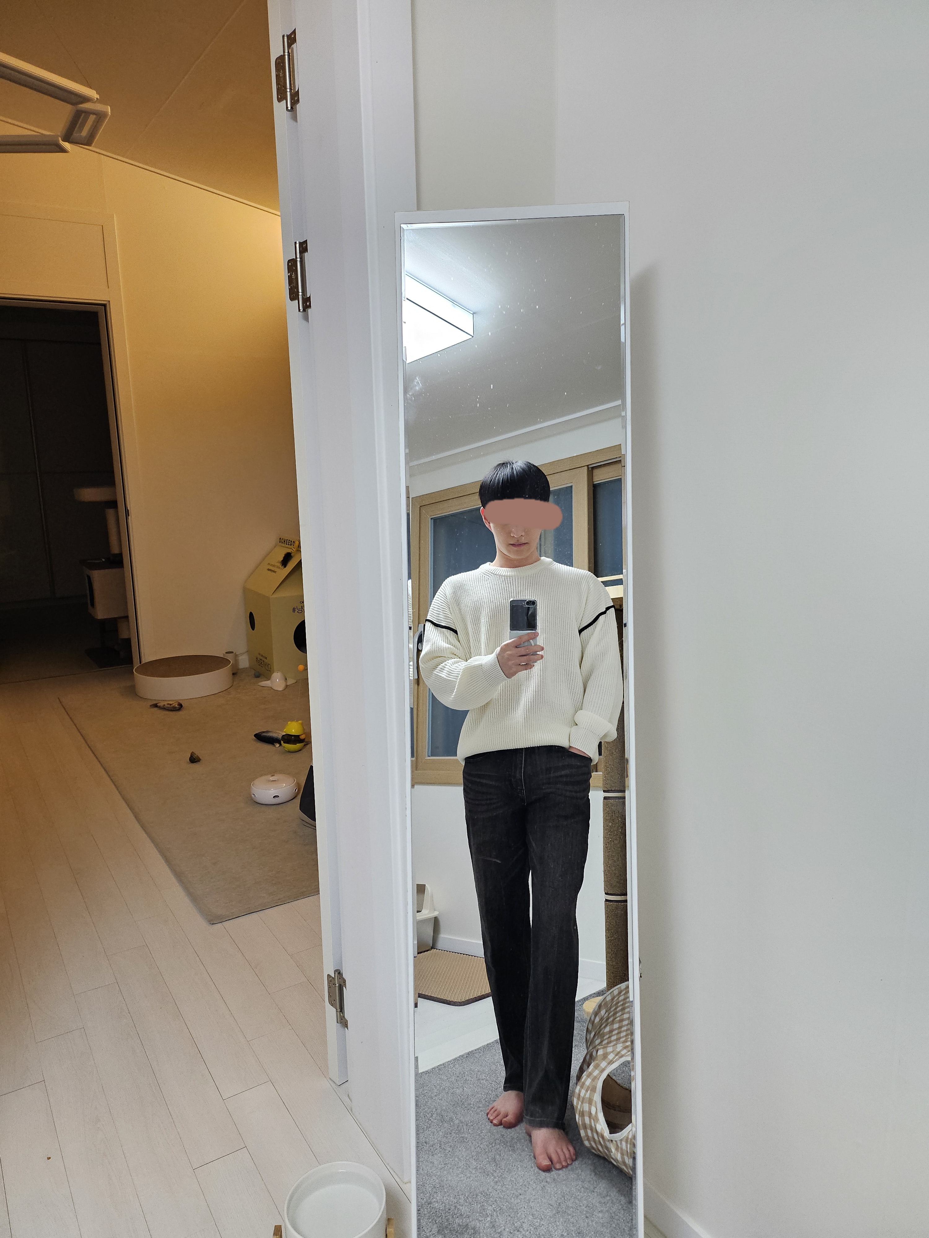 니트 너무 맘에들어요! 허리가 살짝 크긴한데 기장은 잘 맞습니다!
