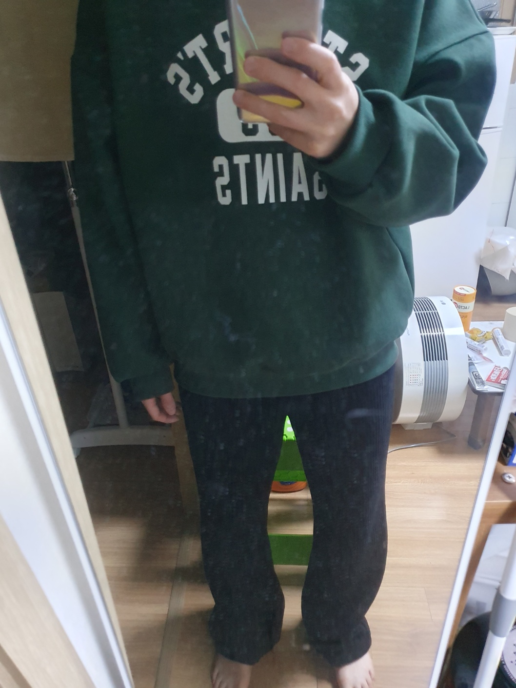 일단 처음 온 옷이 너무 맘에 들었습니다. 그런데 상의는 소매가 손등을 다 덮었고, 바지는 까치발을 해야 간신히 땅에 닿았습니다. 그래서 교환을 요청드려서 사이즈가 조금 작은 옷을 받았습니다. 그렇지만 그럼에도 상당히 커서 부담스러웠습니다. 상의는 손등의 절반까지 오는데, 오버핏은 잘 안입어 봤어서 불안합니다. 바지는 신발신으면 간신히 땅에 안닿는 정도였습니다. 이역시도 입어본 적이 없어서 부담스럽습니다. 이후에 교환해도 비슷할것 같네요..